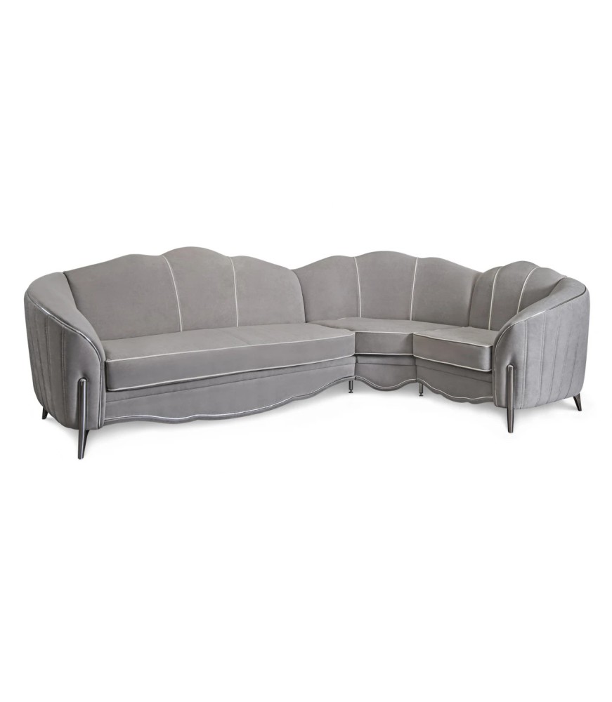 Հարմարավետ և նրբագեղ անկյունային բազմոց 3+2 «Գրավիտա»՝ բացվող մեխանիզմով և արծաթագույն դեկորով