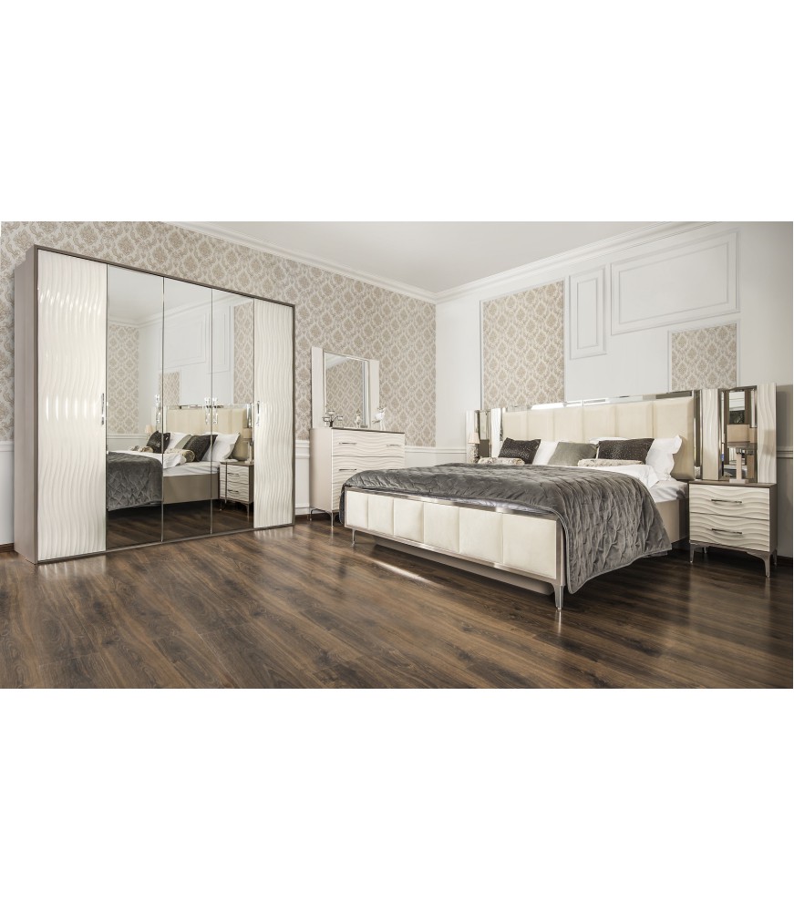 Ննջասենյակ «Գրավիտա» 5 դռնանի պահարան հայելիներով, ՊՊՈ հայելի (զարդասեղանի համար), զարդասեղան, պուֆ, մահճակալ 180×200