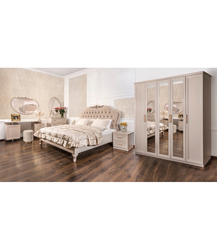 Ննջասենյակ «Մոկկո»՝ 5 դռնանի պահարանով, մահճակալով (180×200), մատե մակերեսով, զարդասեղանով և հայելով։