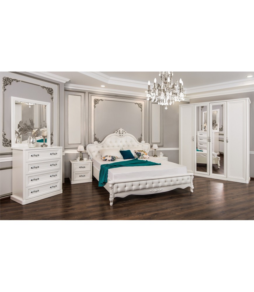 Ննջասենյակ «Միշել» 6 դռնանի պահարան, սպիտակ, հայելիներով, 180×200, վերակառուցվող մեխանիզմով, շրջանակապատ հայելին, նեղ կոմոդ