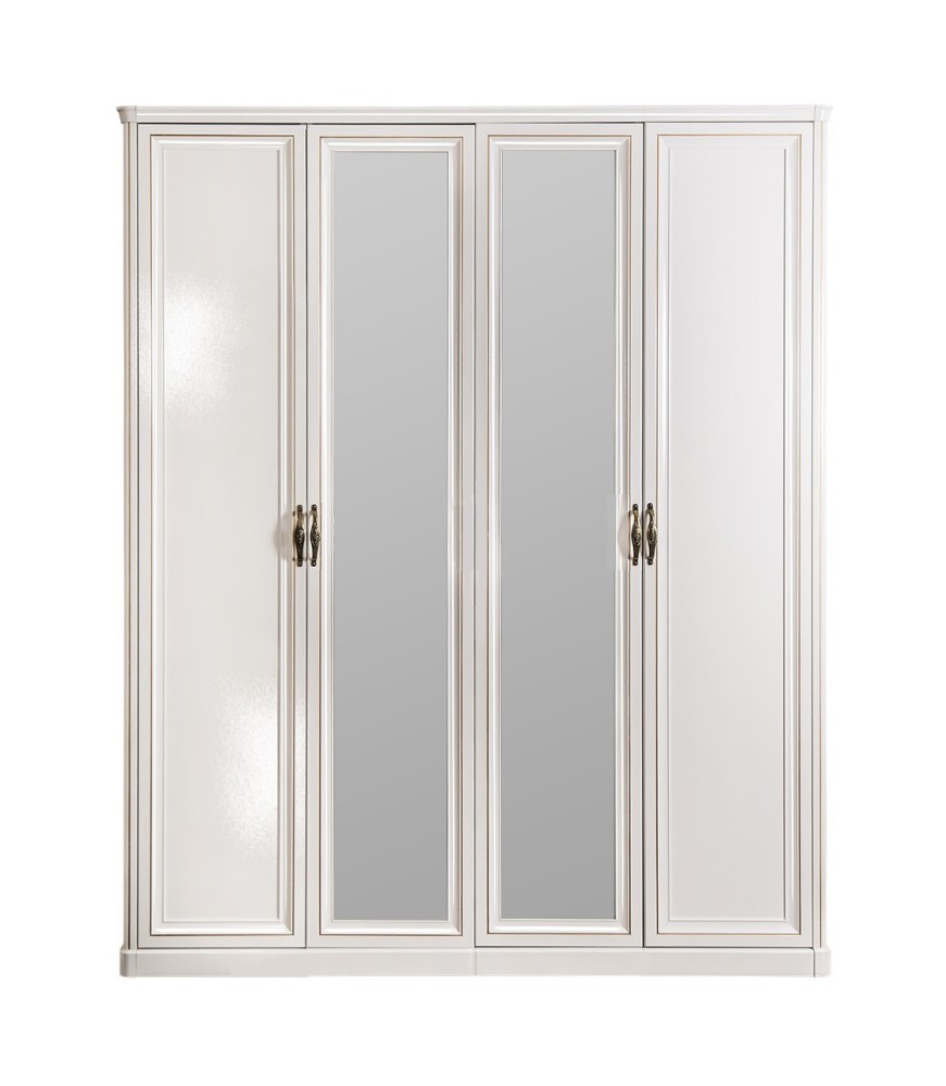 Ննջասենյակ «Նատալի» 4 դռնանի պահարան հայելիներով, սպիտակ, 180×200, ՊՊՈւ հայելի, նեղ կոմոդ