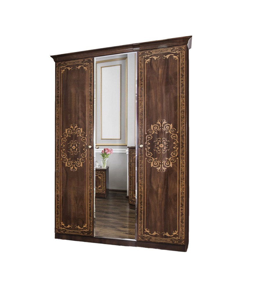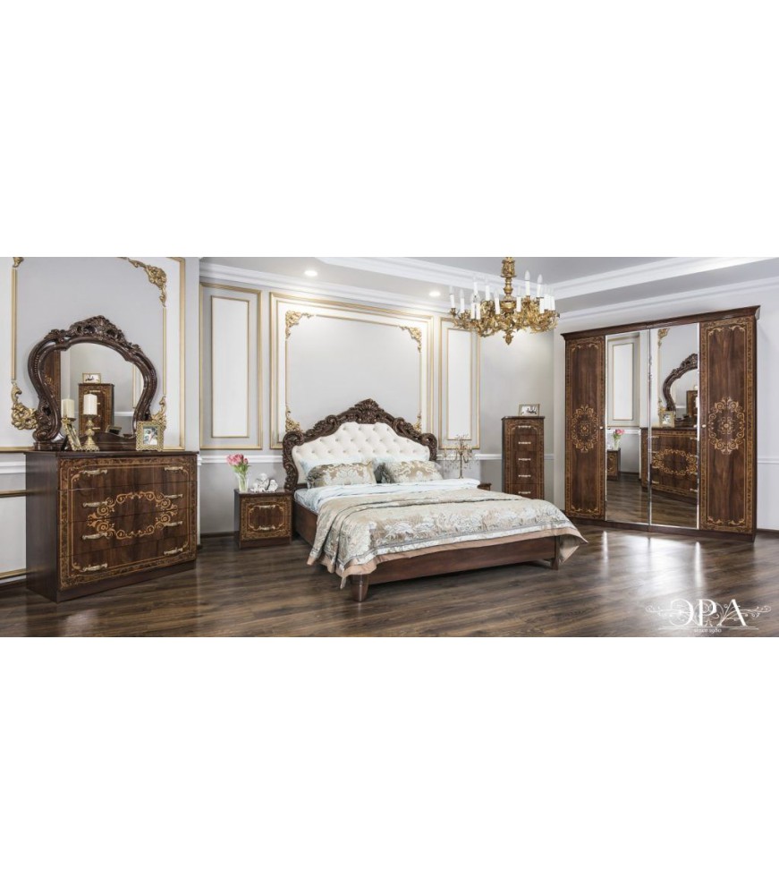 Ննջասենյակի հավաքածու «Պատրիսիա»՝ 3 դռնանի փայլուն պահարանով, 160×200 չափի մահճակալով։ Գույն՝ կարավաջո փայլ/արմատ կրեմ փայլ։