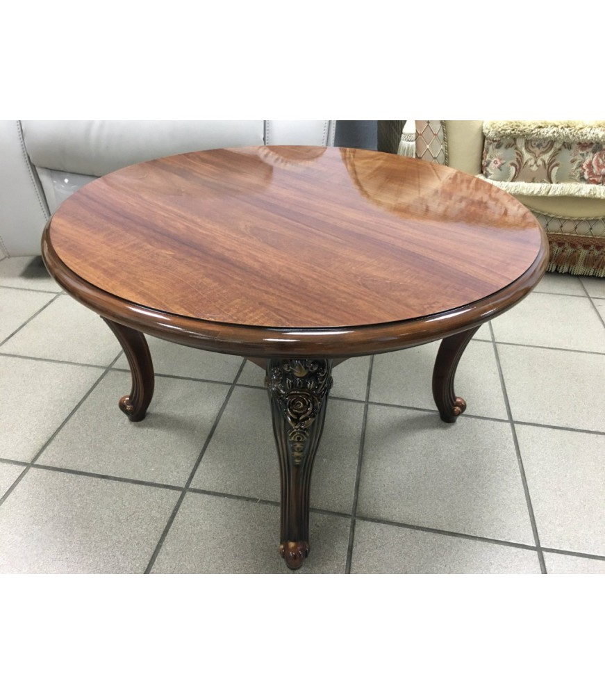 Նրբաճաշակ կլոր սուրճի սեղան «Պատրիսիա»՝ կարավաջո փայլ և կաղնու արմատ կրեմ փայլ դեկորով